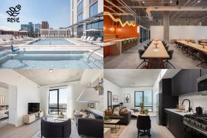 Rising 19 stories above the heart of downtown, Rosie offers 370 apartments, with most homes designed as efficient, stylish studios. For anyone tired of moving trucks and furniture shopping, fully furnished options are available—just bring your suitcase and you’re good to go.