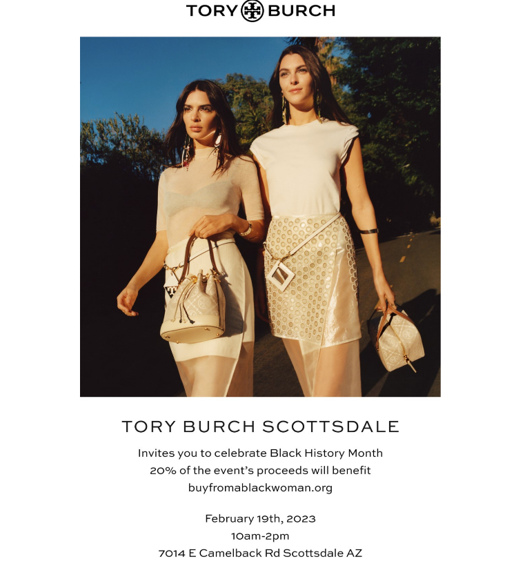 Tory Burch Scottsdale’s Black History Month event is a good example of this. The store is celebrating Black History Month with a shopping event and donating a portion of the proceeds to the nonprofit that I founded, Buy From A Black Woman.