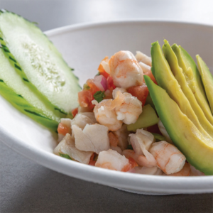 Ceviche [Provecho]Fresh shrimp, fish, cucumber and serrano peppers, served with tostadas and saltines |