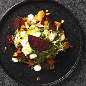 Beets Salad Red and gold beets, romaine, frisée, goat cheese, radicchio, pistachios and beet chips $12.95 |