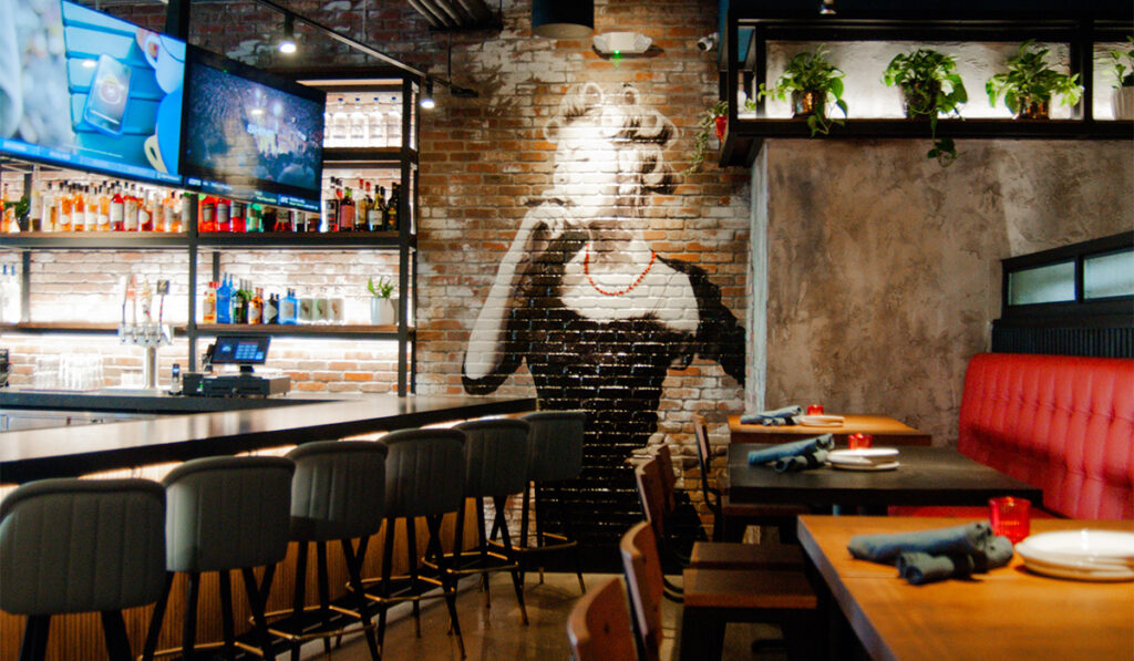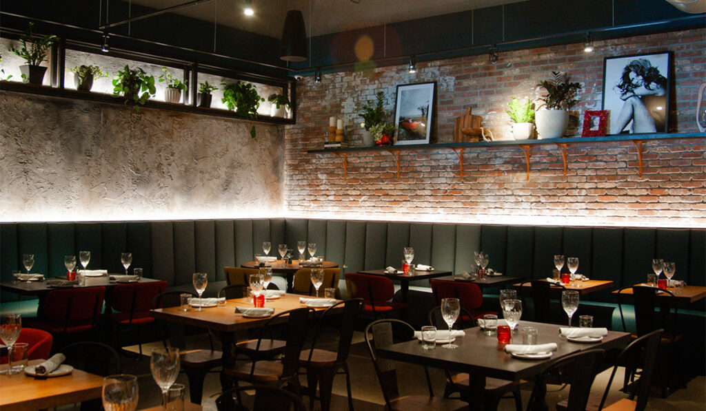 The 5,000-square-foot space is sleek and rustic, with a touch of Italian warmth. The dining room at Rosso Italian is designed to be both elegant and comfortable, with warm lighting and a cozy vibe.