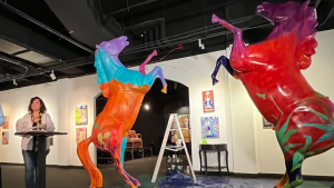 Ortiz’s work often features vibrant colors and desert landscapes with native flora and fauna. Sandra Sutton Andrews of the Millet House in Mesa, Arizona, encouraged Ortiz to apply so southwestern art would have the opportunity to be represented among the different stallions.